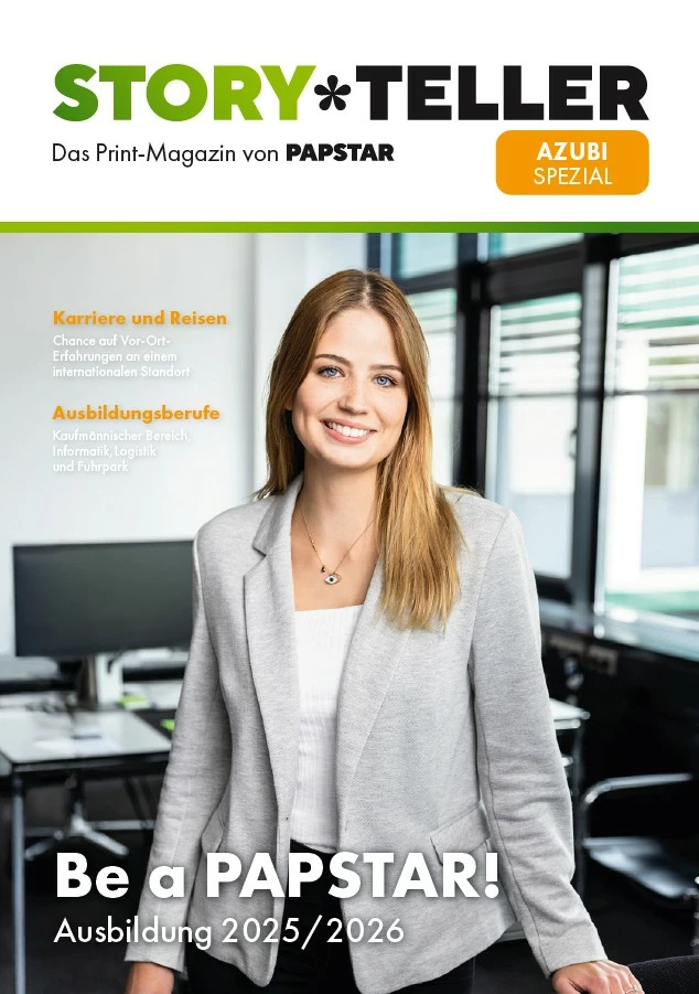 In der Ausbildung junger Menschen sieht PAPSTAR die beste Möglichkeit, um talentierte, ambitionierte und hochmotivierte Fachkräfte von morgen zu gewinnen. Bestenfalls geht das mit einem ausgeprägten und hohen Identifikationspotential einher - das stärkt das Team und fördert das Miteinander.